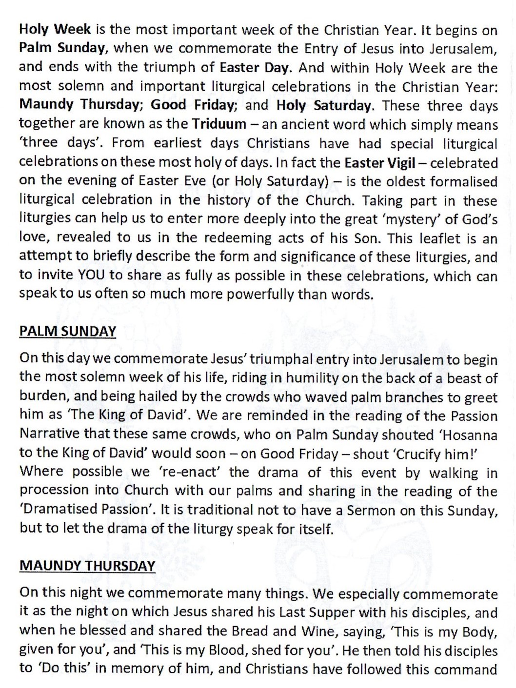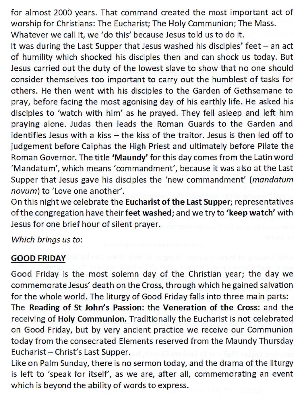 Services for this week are as advertised